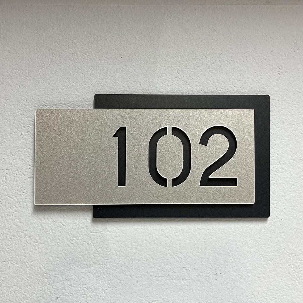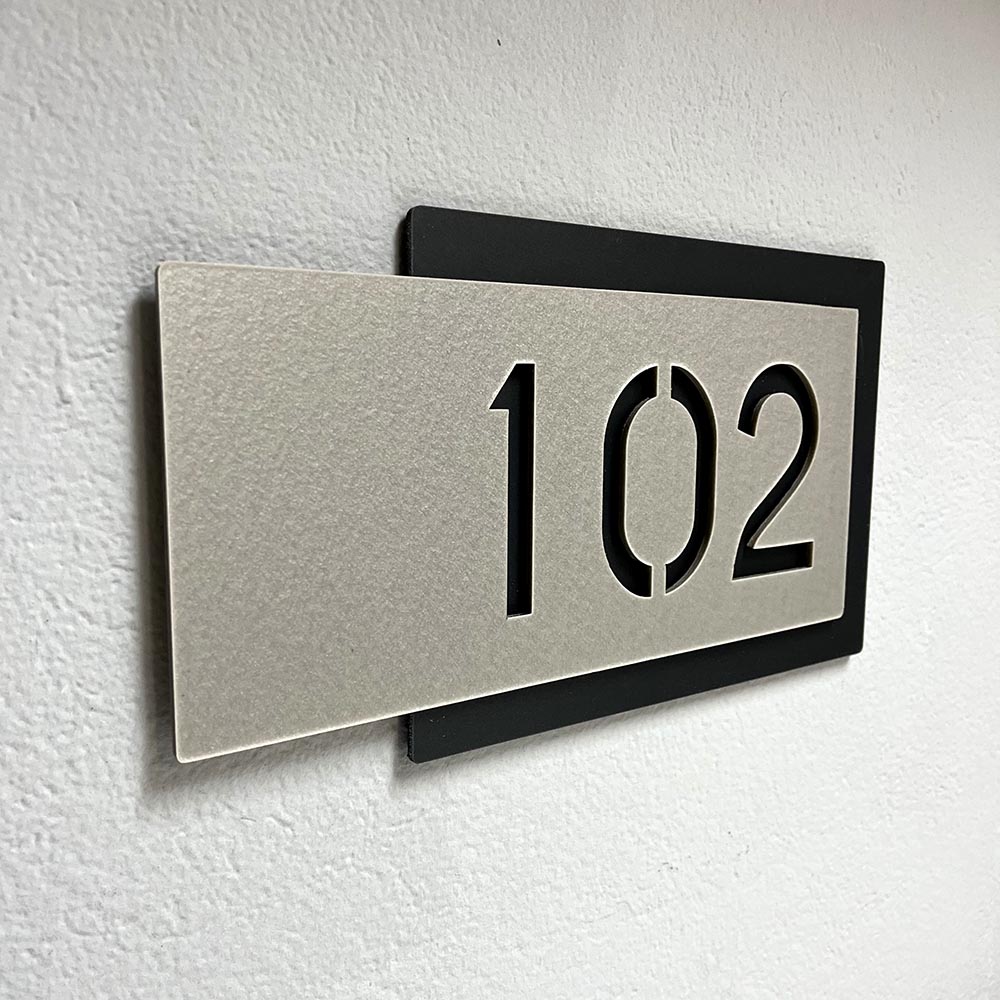 Hišna številka model 6 je primerna za vsak tip hiše. Številka je v mat sivo-črni kombinaciji in narejena iz pleksi stekla.