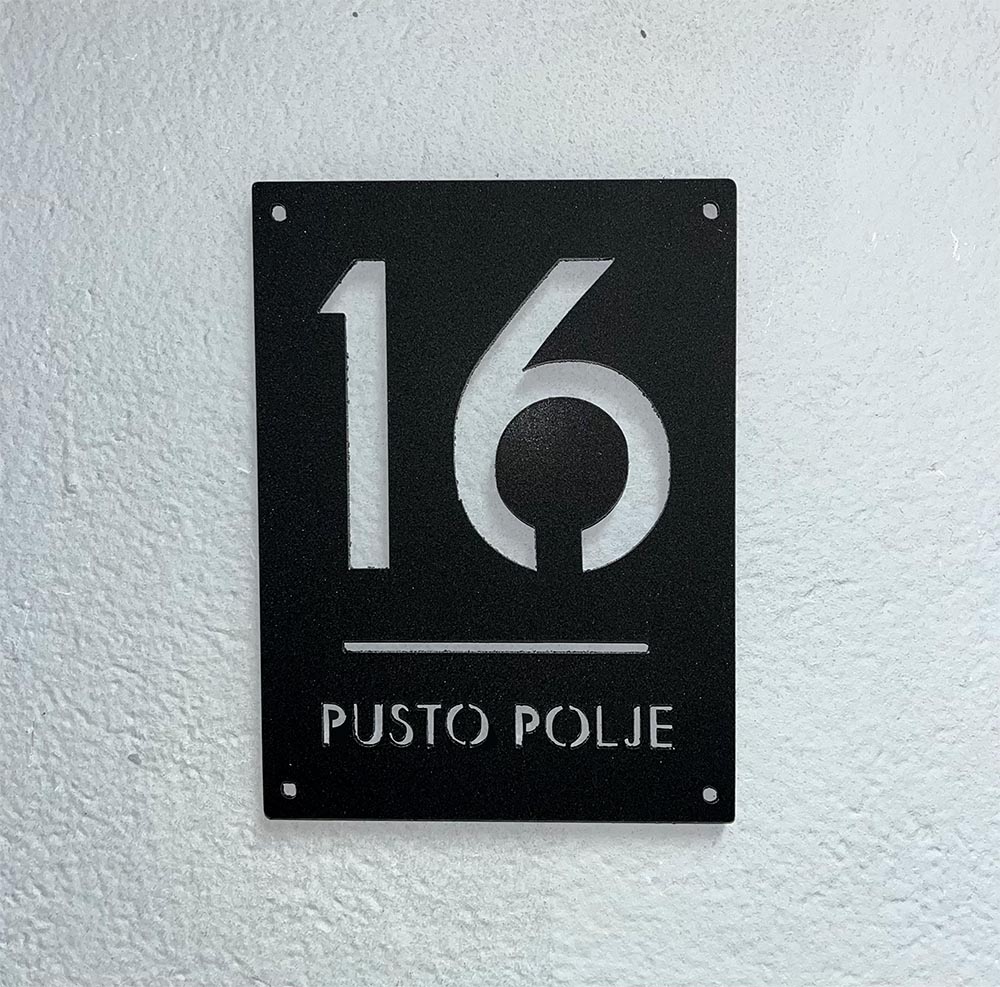Z doplačilom lahko prejmete tudi vijake. Na hišni številki so prej narejene luknje, v posebnem paketu pa po želji prejmete vijake. Hišna številka je lahko tudi brez lukenj in jih zvrtate sami ali pa hišno številko pritrdite na kakšen drugačen način.